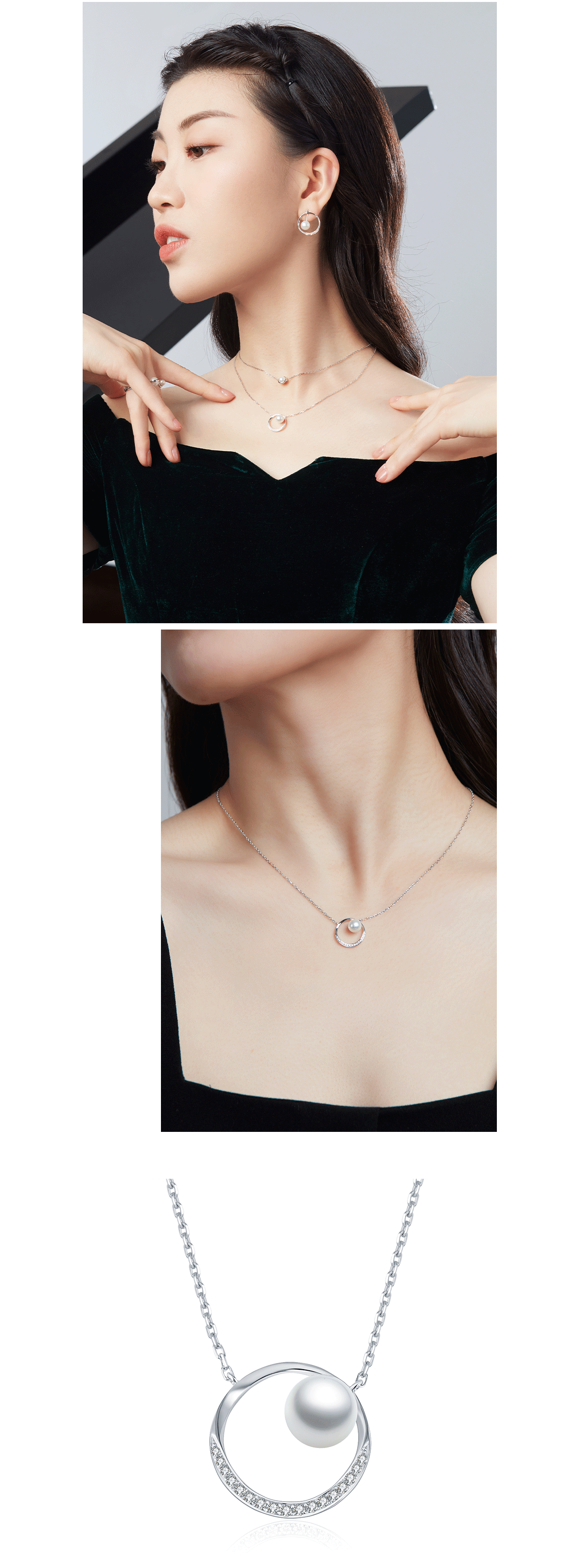 Eclipse日食系列 群镶钻石 白珍珠项链